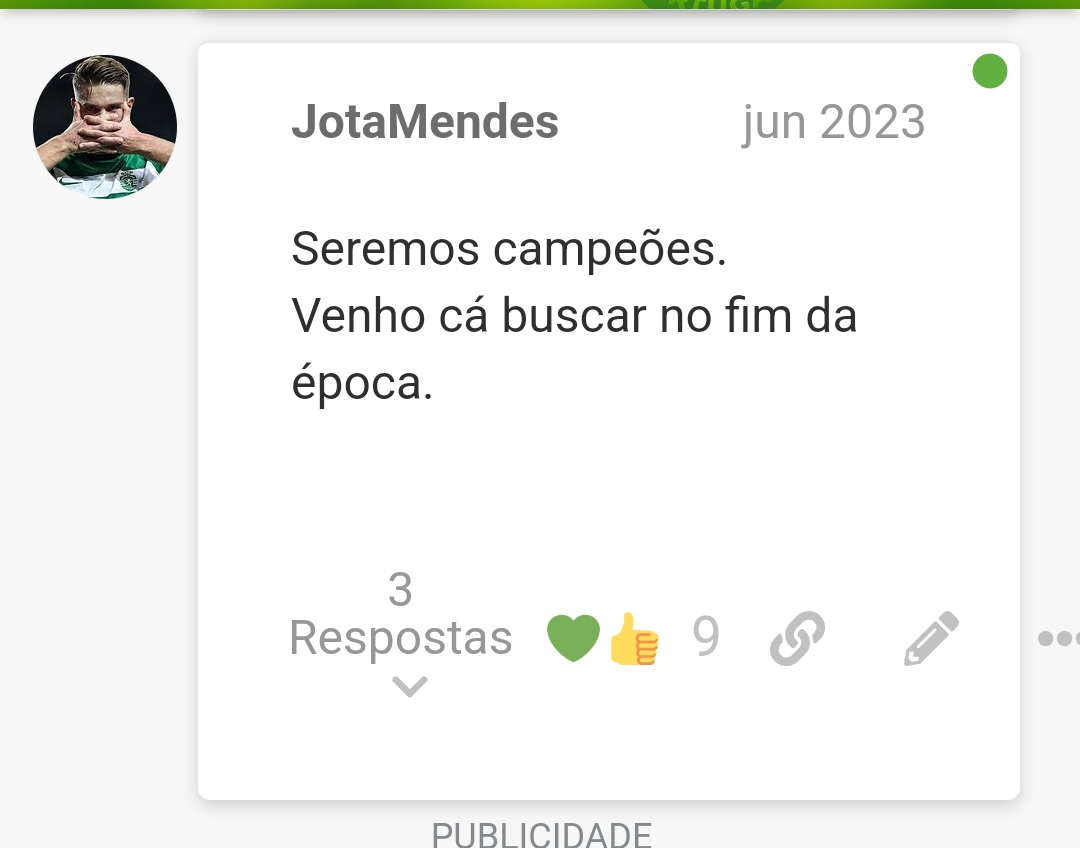 Obvio que somos o SCP, e tendo em conta o contexto pre RA, a verdadeira união, como se viu há alguns anos atrás, nunca será possivel. Cabe, sim, à equipa novamente agarrar os adeptos, com as conquistas e a tal “tesão” que aquela equipa de 2021 tinha e cativou tanta gente, incluindo eu, que andava desligada.