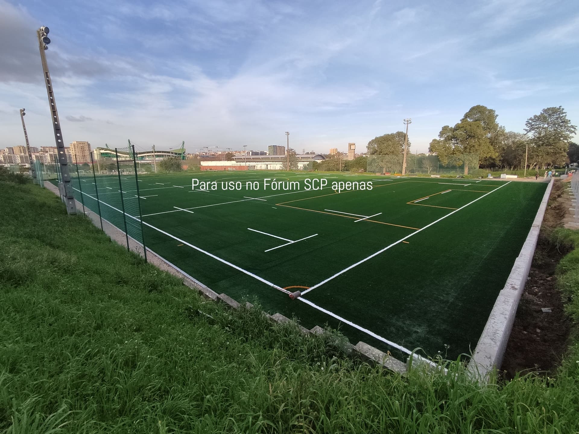 O campo 7 já está quase pronto e assim o Sporting ficará com usufruto de 3 campos. Tem marcaçãoes de rugby, futebol de 11 e 2 de futebol de 7.