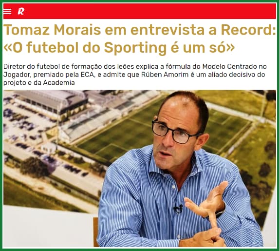 TM - Não podemos esquecer o Sr. Aurélio Pereira e toda a equipa que trabalhou à volta dele. São pessoas que deixaram um legado fantástico no Sporting. Fantástico! É muito maior do que nós pensamos quando estamos lá fora. Esse legado passa muito por um futebol criativo, irreverente, onde os extremos chegam longe. Mas temos vindo a formar jogadores em todas as posições. Queremos uma escola que abranja tudo e não ser especialistas numa posição.