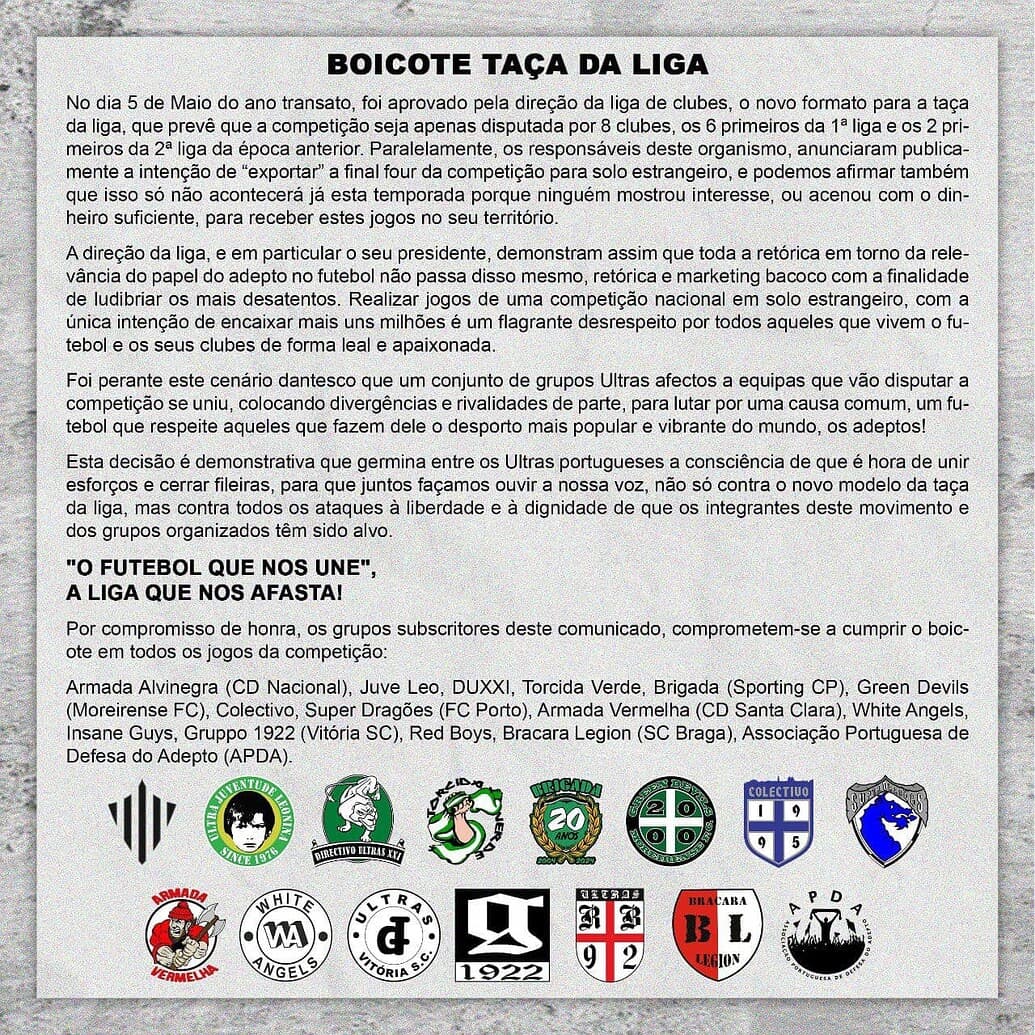 Não vão estar por isto, nem o Nacional vai ter claque, os únicos que não aderiram foram os rabolhos.