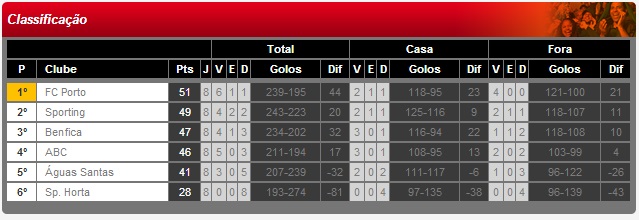 Águas Santas 24-27 FC Porto Sporting35-30 ABC