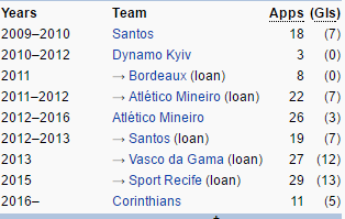 Trata-se de um bom avançado “foi bem no Santos e no Sport Recife, no Corinthians desde o início teve alguns bons momentos. Surgiu no Santos em 2009/2010 junto com o Neymar”.
