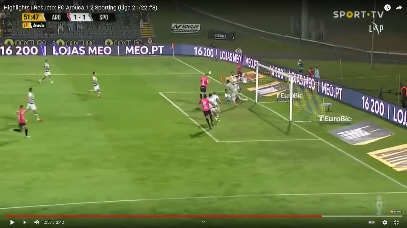 Eu vejo ali 5 jogadores de campo (e 3 mais atrasados + 1 do Arouca) mais o GR do Sporting para 3 atacantes dos Arouca, muita culpa neste golo para o posicionamento defensivo dos jogadores do Sporting.