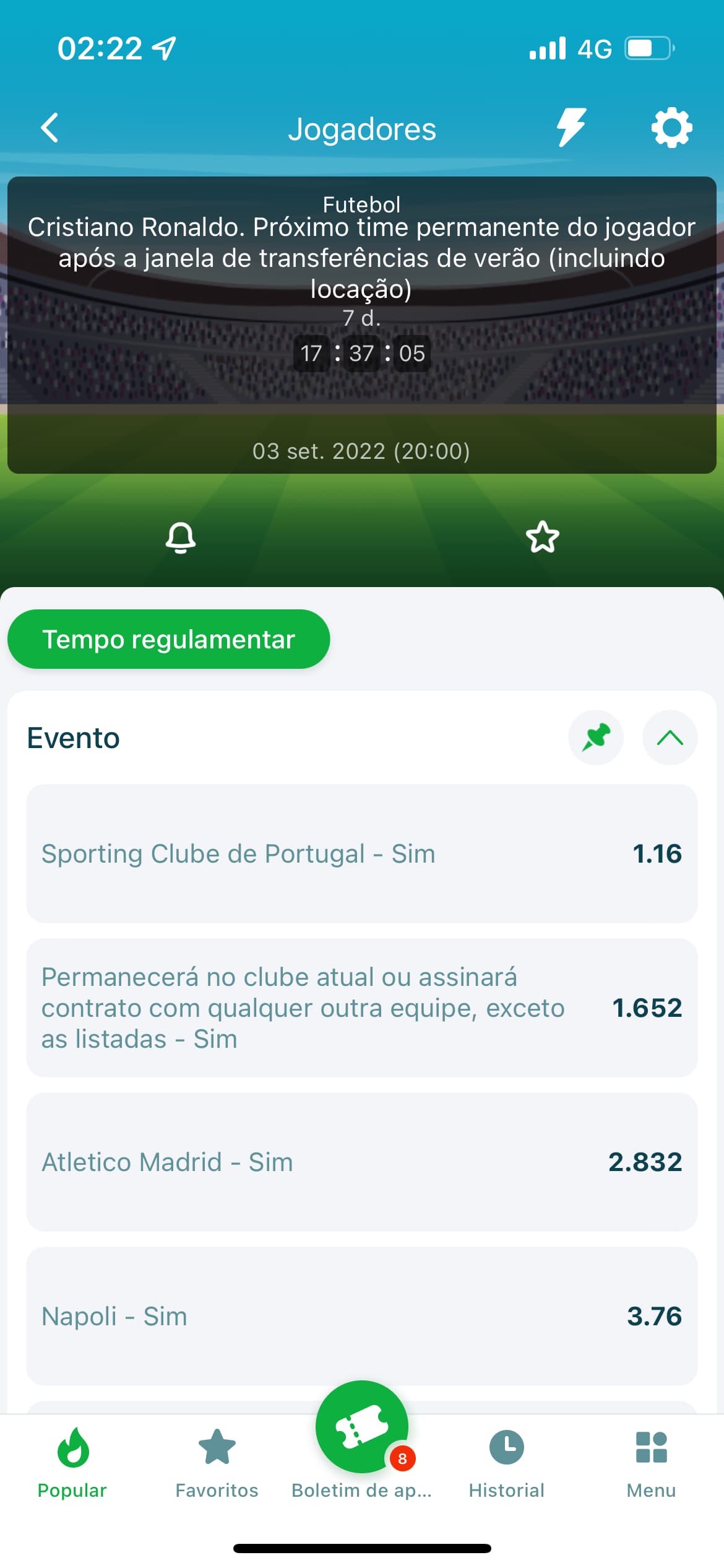 Alguém sabe como é que aposto para onde o Ronaldo vai na 22bet? Tou farto de procurar e nada.