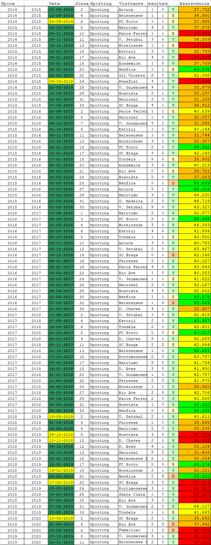 Olhando só para as cores da tabela, nunca tivemos tantos jogos seguidos no vermelho como actualmente. E com esta direção os laranjas/vermelhos são numa quantidade preocupante, basta ver que nos anos passados era quase tudo amarelo.