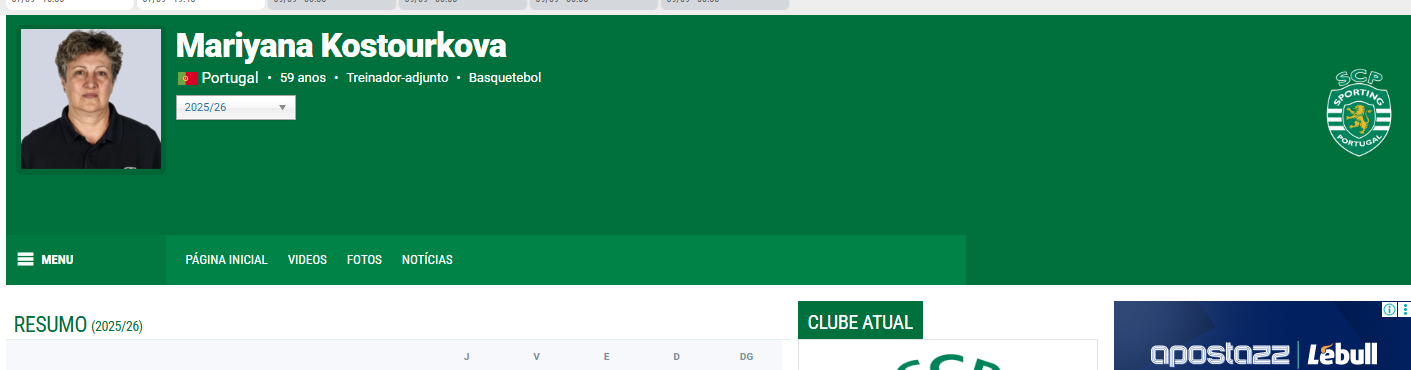 Mariyana Kostourkova treinadora adjunta boa aquisição, provavelmente orientará a equipa sub 22