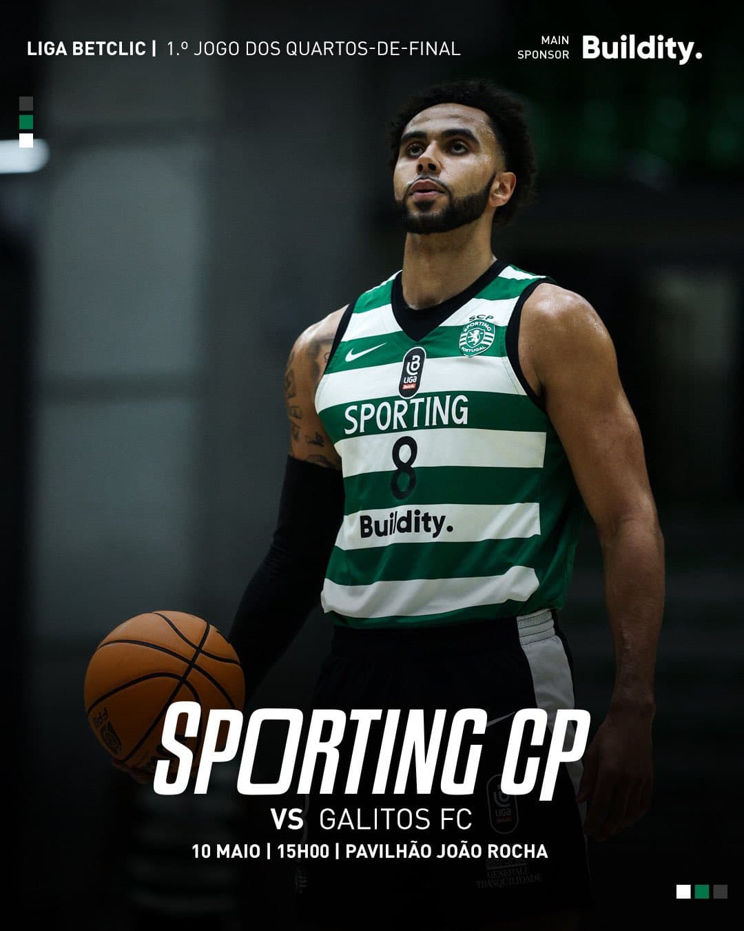 A equipa principal masculina de basquetebol do Sporting Clube de Portugal joga, este sábado, às 15h00, frente ao Galitos FC o primeiro jogo dos quartos-de-final do play off do Campeonato Nacional.