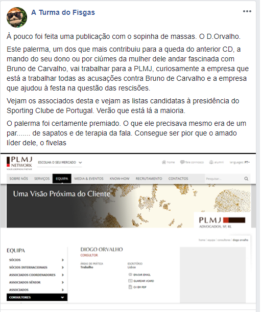 Isto dà-nos informacoes importantes… da mesma forma que Elsa Judas passou a ser um problema a partir do momento em que foi confirmada a violacao dos estatutos, talvez seja hora de colocar em causa a forca de todos os entendimentos juridicos de Bruno de Carvalho que desde sempre foram bastante questionaveis. Por exemplo a mim nao me parece em nada liquida a questao das rescisoes ou do diereito de Bruno de Carvalho a apresentar-se a eleicoes…