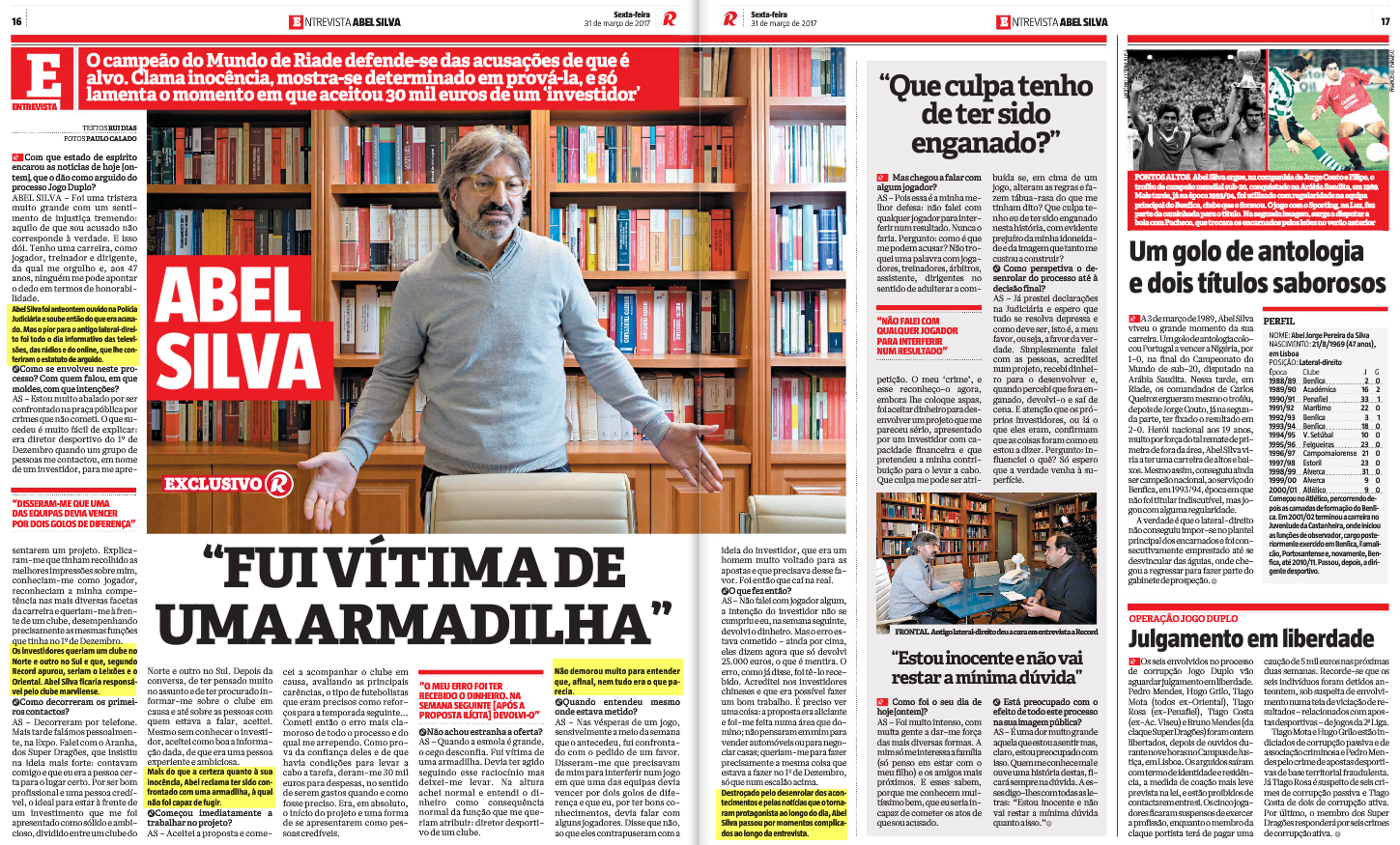 A notícia sobre os novos arguidos no processo Jogo Duplo começou a ser divulgada pela hora de almoço de dia 30 de Março de 2016. No mesmo dia, Abel Silva concedeu uma entrevista ao jornal Record que viria a ser capa no dia seguinte.