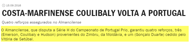 Como podem verificar, o jornal Record anunciou na sua edição de 15 de Dezembro de 2015 que Coulibaly estava à experiência no Seixal. No dia 27 de Janeiro, cerca de um mês e meio depois, o jornal Record adiantou que o jogador seria contratado pelos encarnados, assim como Ivan Zlobin, vindo por empréstimo da União de Leiria.