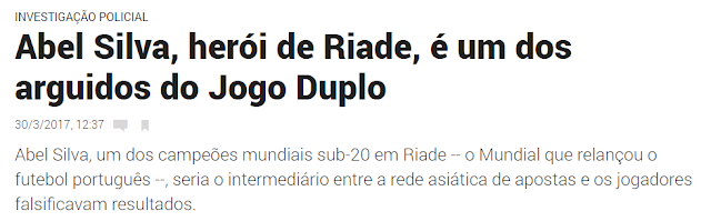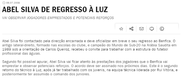 Link da notícia (aqui)Jogador, treinador-adjunto, treinador principal e olheiro em 2008. Curiosamente, os jornais optaram por esconder a forte ligação de Abel Silva ao Benfica. Por contraste é bem visível a colagem que tentaram fazer ao outro arguido ao Porto, por este alegadamente pertencer aos Super Dragões. Engraçado não é? Mas há coisas mais engraçadas.