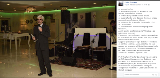 Luís Filipe Vieira não esteve presente no evento mas mandou alguém em sua representação. Um senhor chamado Pedro Fonseca que colocou toda a informação no seu Facebook pessoal.