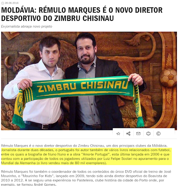 Curiosamente, Rémulo Marques foi jornalista durante 20 anos. Aposto que deve dar jeito a uma empresa de agenciamento de jogadores ter alguém com conhecimentos na imprensa.