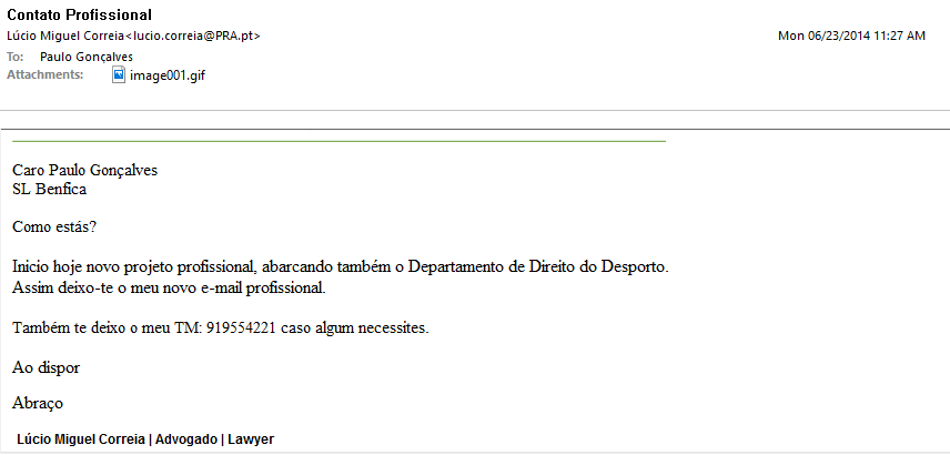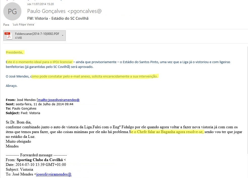 No mesmo e-mail é revelado que o Zenit queria uma resposta urgente sobre a proposta, tal como o empresário Jorge Mendes. Ainda no mesmo e-mail, Paulo Gonçalves terá garantido que o clube russo não iria “exercer a opção de compra de nenhum deles [Salvio e Gaitán]”. Essa parte do contrato da venda de Garay era “apenas uma forma de conseguir de forma realista completar a operação. Caso contrário, a auditoria do clube [Zenit] coloca-lhes reserva”, terá insistido o antigo assessor jurídico das ‘águias’, de acordo com dados divulgados pelo Record, citando o tal e-mail. Paulo Gonçalves terá mesmo garantido a Vieira que “Jorge Mendes disse que o Zenit estaria disposto a fazer um documento à parte” exatamente a informar o Benfica de que não iria exercer a dita opção de compra sobre Gaitán e Salvio.