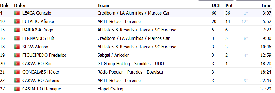 4 com menos de 25 anos, 2 com menos de 30 anos e 4 com mais de 30 anos e quase já em fim de carreira. Parece-me que falta talento português para os próximos anos e nem acredito que nos próximos anos algum português ganhe a Volta a Portugal.