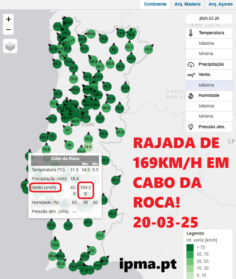Ai e no cabo Carvoeiro é normal levarem logo com a maior potencia ( e Sagres Também quando é a sul), pois são as áreas mais colocadas no mar e sem qualquer proteção aerodinâmica para tal.