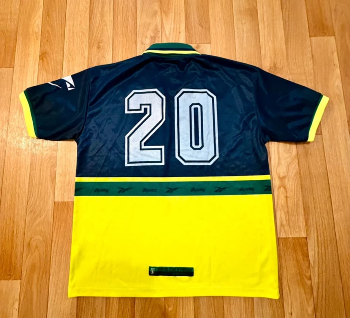 Achei estranho e não consegui verificar a veracidade. A camisola tem patch de campeão, patch da liga e ainda nome e número com a fonte da liga.