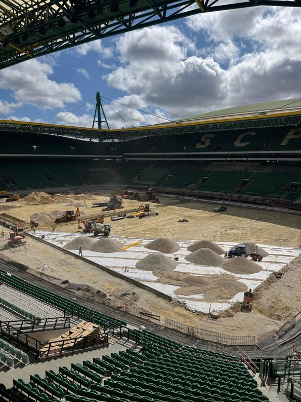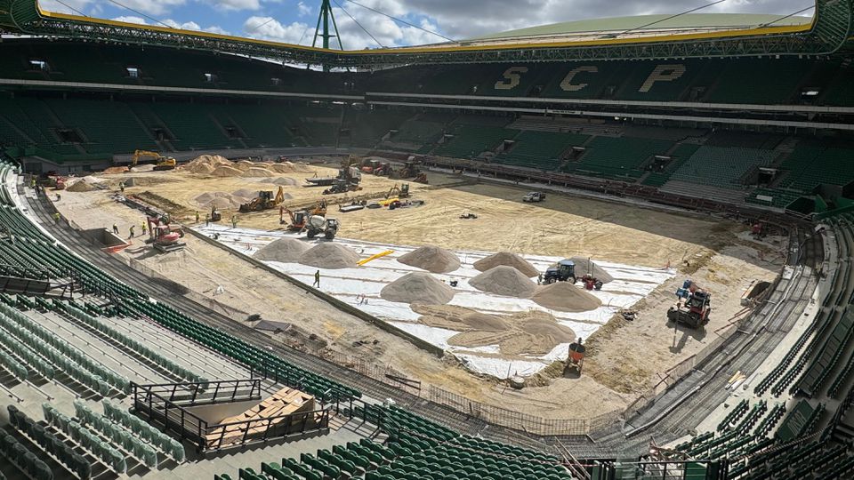 A Bola meteu uma foto agora onde se vê que o fosso está todo fechado e já estão a tratar do relvado. Não consigo sacar a foto