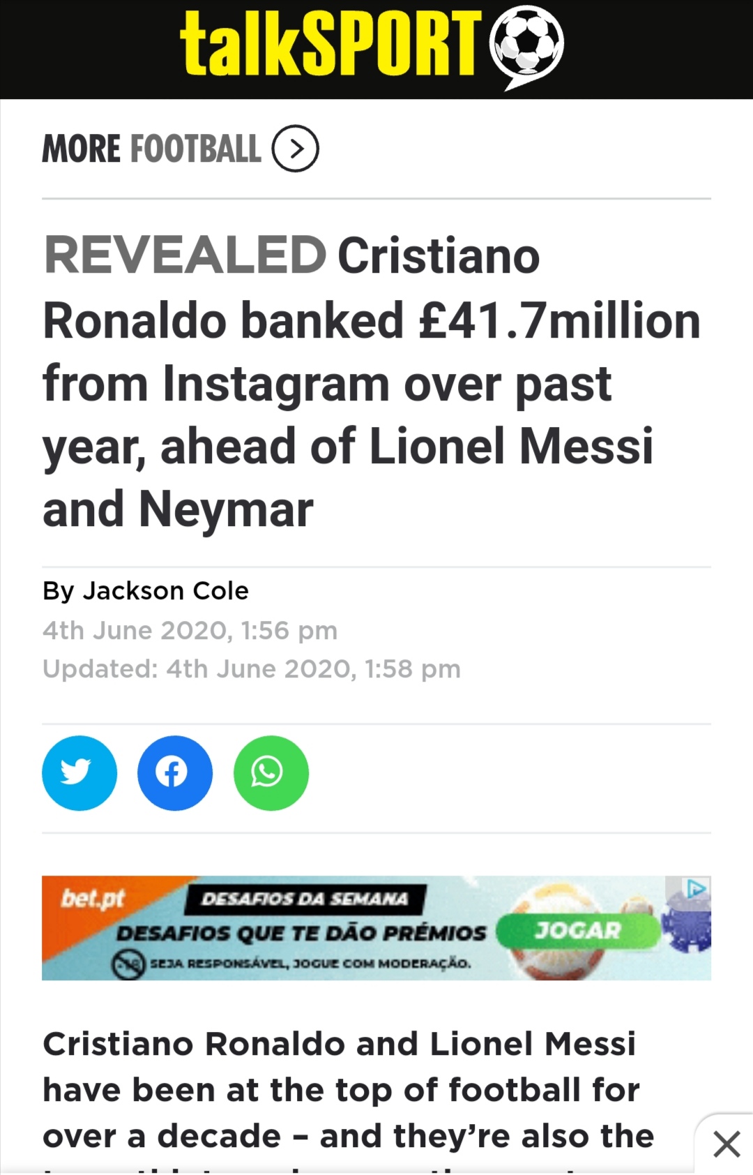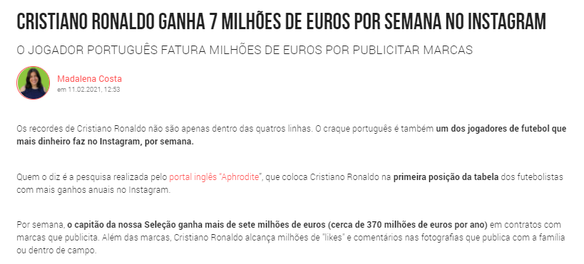 E tenho a certeza que só das redes sociais o Ronaldo ganha mais que da juventus