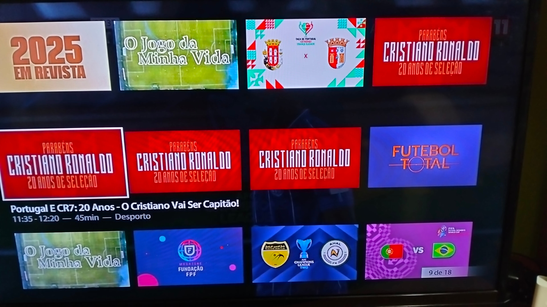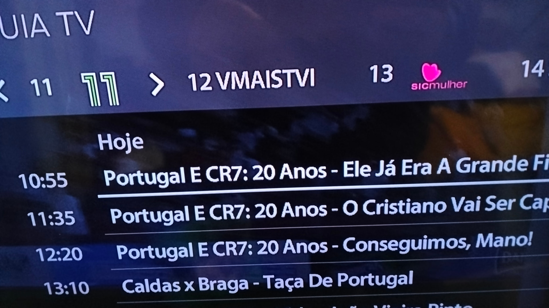 Hoje passaram 4 episódios no canal 11 sobre o Cristiano Ronaldo na seleção desde a sua estreia. O 1º foi às 10h30 e deram os restantes a seguir. ![]()