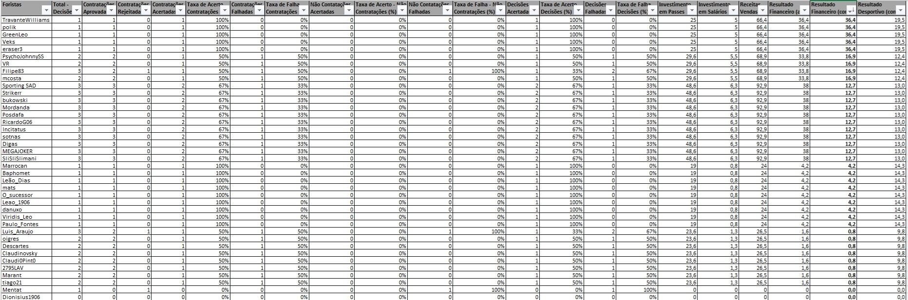 Em anexo, podem consultar o ficheiro de gestão virtual onde aparecem todos os foristas e todos os seus resultados.