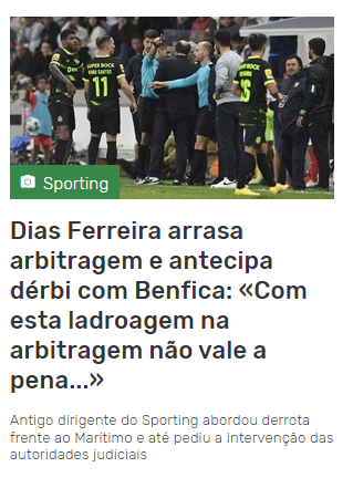 «O Sporting não lhes dá jantares, almoços, vouchers, não os protege, não mete cunhas por eles, não mete cunhas pelas observações. E essas coisas, a determinada altura, têm de ser pagas. É isso que o Sporting tem de pagar», sustenta Dias Ferreira, citado pelo site daquela rádio, sublinhando que «por isso o Sporting teve de amealhar muitos pontos para, nesta altura, estar na frente.»