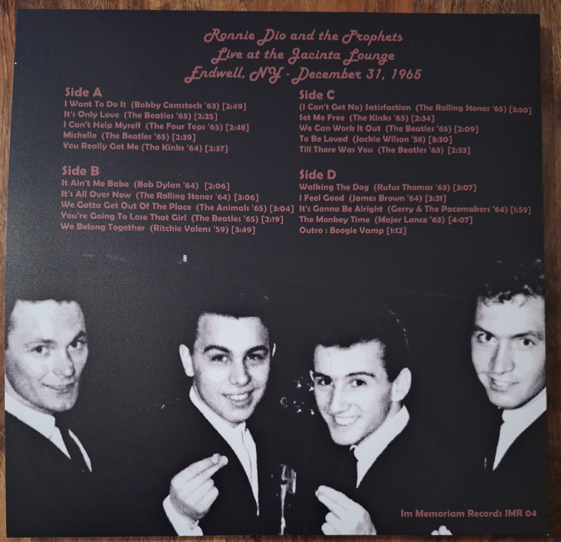 Ronnie Dio and the Prophets, duplo ao vivo, concerto 31 de dezembro de 1965. Aliás foi um baile de reveillon. O som parece-me ser mono.