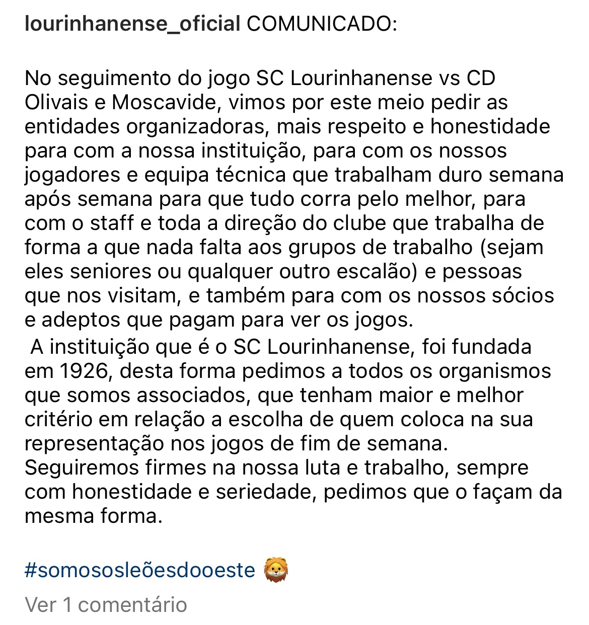 Na Lourinhã, parece que foi uma arbitragem à moda do Apito Dourado, com claro prejuízo para a equipa da casa.