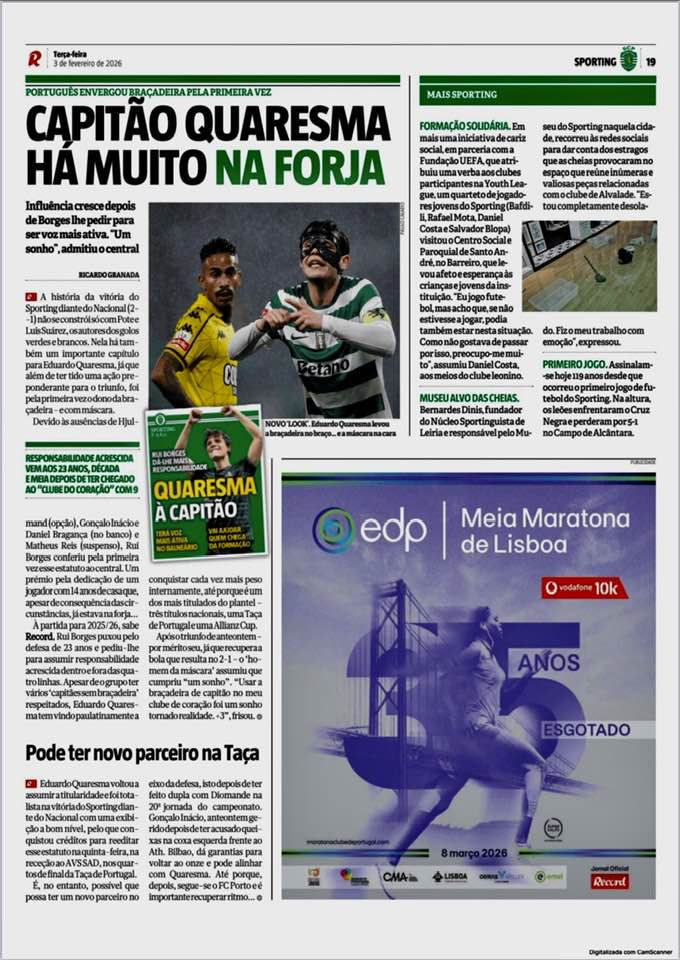 Este tem de ser sempre titular, seja onde for, neste momento prefiro o ao titular á direita, é demasiado superior com e sem bola, mas o Borges é tudo pré definido, vai resultado nesta liga contra os fracos, na Champions é a sorte do costume, seja Bilbau, PSG, ou até Marselha, onde caiu para o nosso lado com demasiada sorte, exatamente pela postura especulativa que ele tanto gosta, jogadores como Edu, Maxi, Suarez, Diomande, Hjulmand não foram feitos para esse tipo de jogo.
