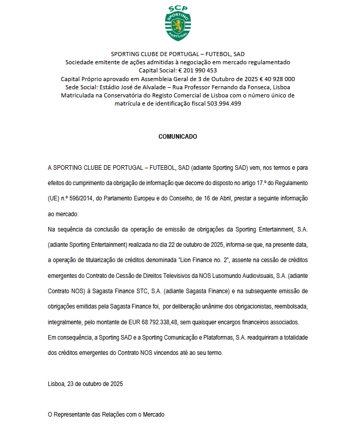Atenção - pelo que diz o comunicado serviu apenas para reestruturar o montante associado à Sagasta, os tais 68.8M que ainda devíamos. Os 2 EOs que emitimos no ano passado mantêm-se.