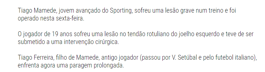Alguém sabe qual foi a lesão do Tiago Ferreira?