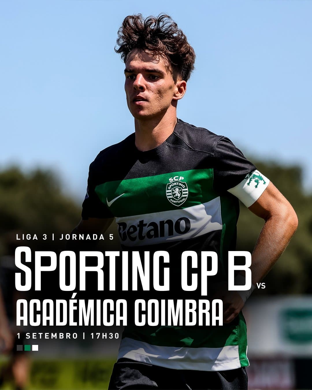 A equipa B de futebol do Sporting Clube de Portugal recebe, este domingo, às 17h30, a Associação Académica de Coimbra em jogo da quinta jornada da Série B da Liga 3.