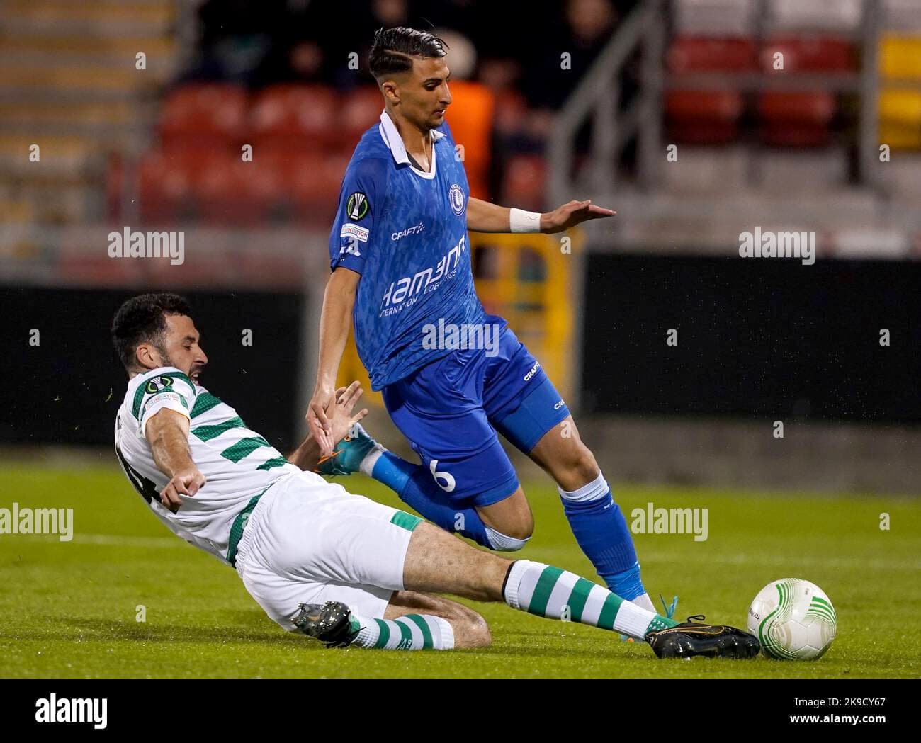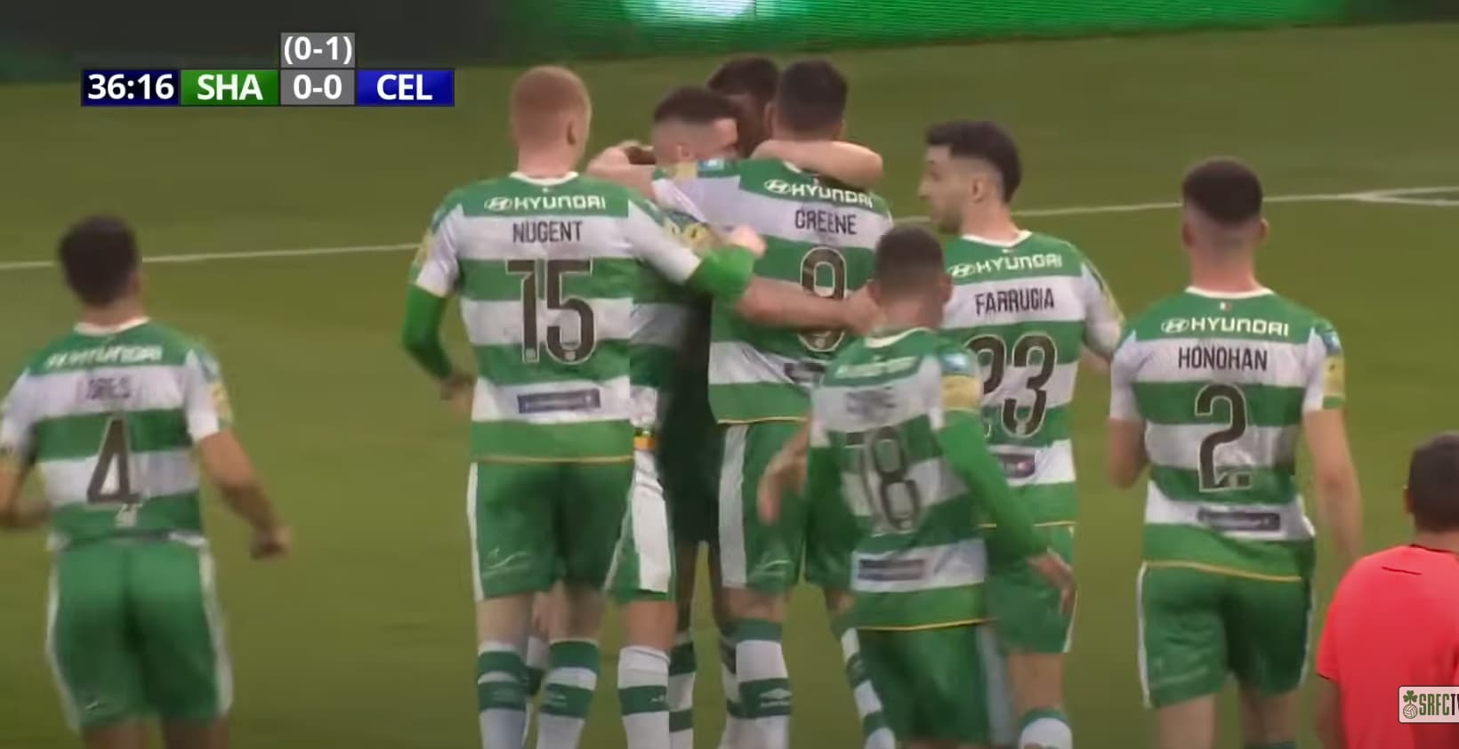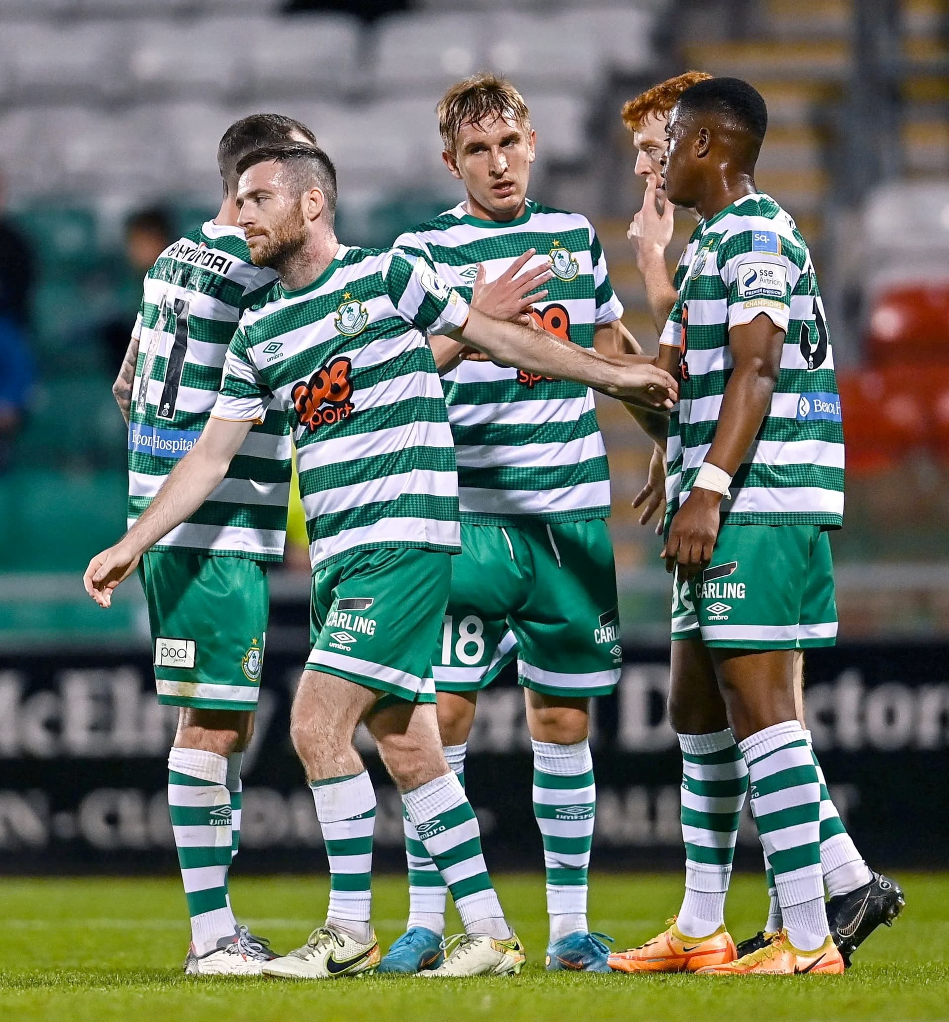 O Shamrock Rovers da República da Irlanda jogou com listas verdes e brancas nas costas numa eliminatória da UEFA Europa League…