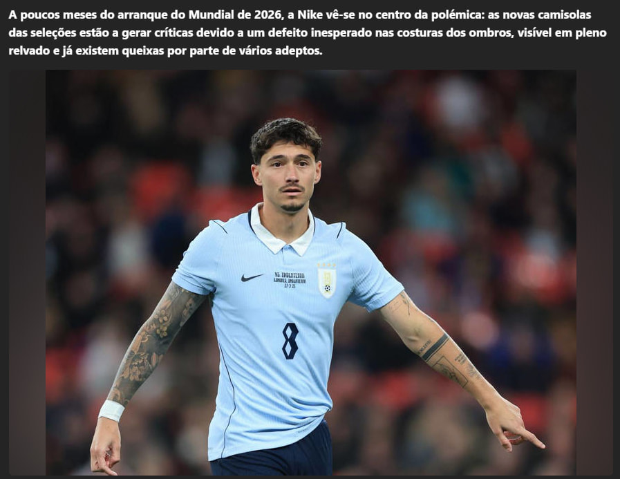 Torna-se embaraçoso por serem as camisolas do Mundial recém lançadas e pela expectativa toda à volta, ainda mais por serem os modelos top-tier na Nike de contratos milionários.