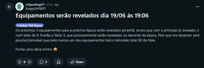 Vi no reddit que iam apresentar 3 camisolas amanhã (19/06) às 19:06