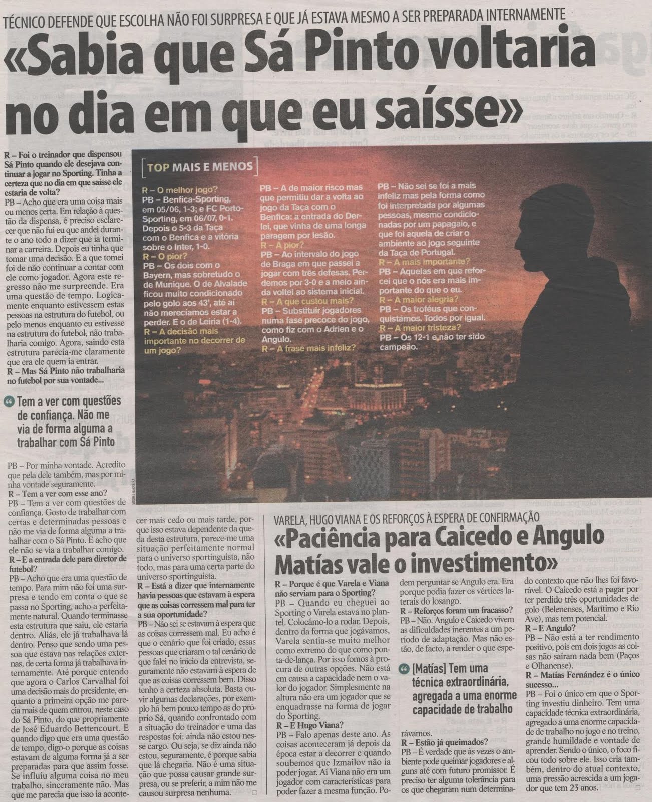 O Paulo Bento foi excelente ao criar uma defesa sólida e a partir daí trabalhar o resto com aquilo que lhe deram, que não foi muito. Mas depois há episódios que custam a perceber como é o caso do Carlos Martins e do Varela, ambos os jogadores não serviram para o Sporting mas ironicamente servem agora para a seleção, e houve ainda a demasiado longa novela Stojkovic da qual também não se ficou a perceber muito bem o que aconteceu, mas como resultou no lançamento do Patrício tem-se de dizer que foi um mal que veio por bem.