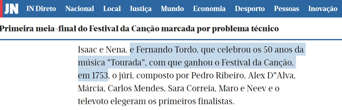 Agora vamos ver se o teu doutoramento em festival da canção foi tirado ao Domingo ou não ![]()