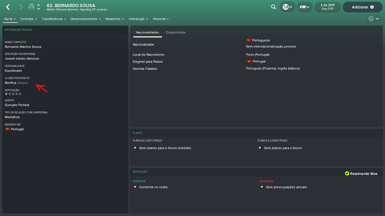 Da formação as minhas estrelas são o Pedro Marques, Jovane e o Tiago Djaló que já é titular na B. O Rafael Leão continua com stats muito banais (os mentais então…), não sei se vai lá chegar. Meti a ter tutoria com o Doumbia lol