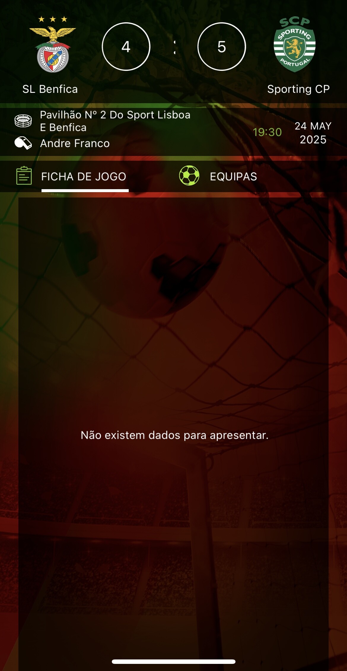 deve ter ido lá ver o jogo ao Pavilhão da Luz