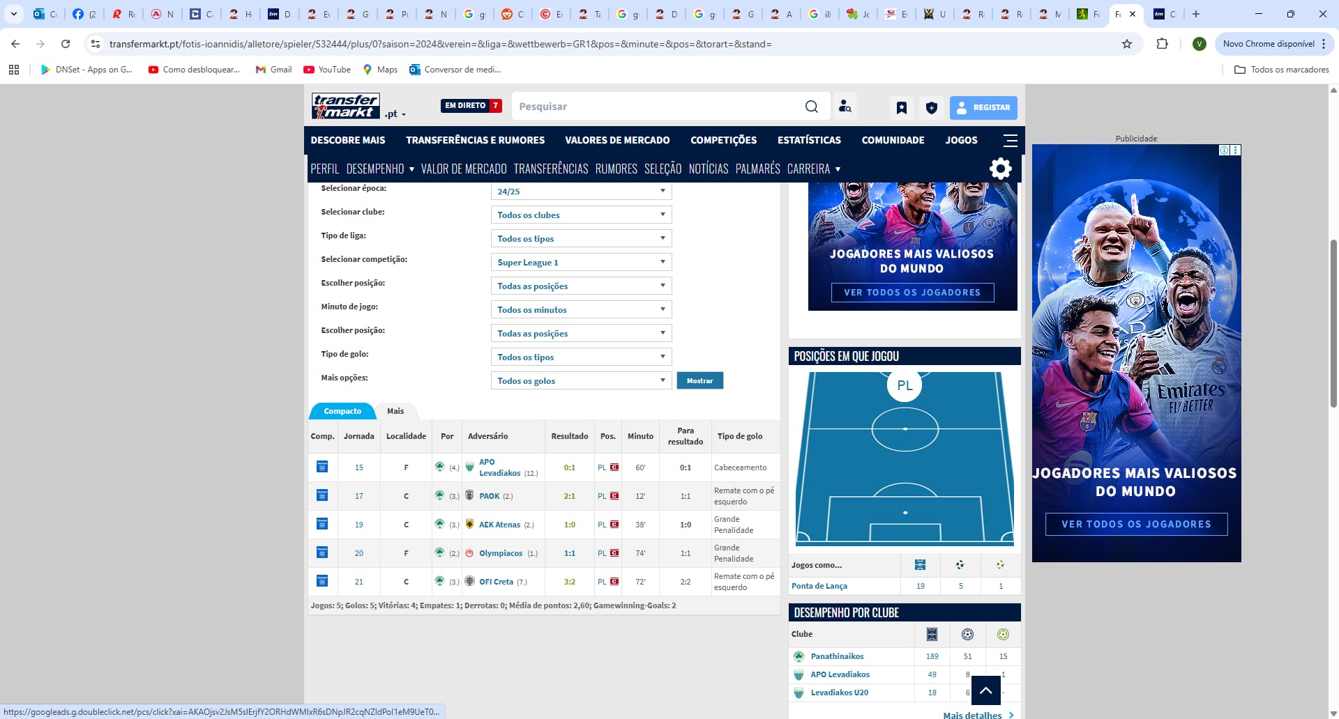 Só uma achega, o Fotis marcou 11 golos na época passada + 1 na seleção.