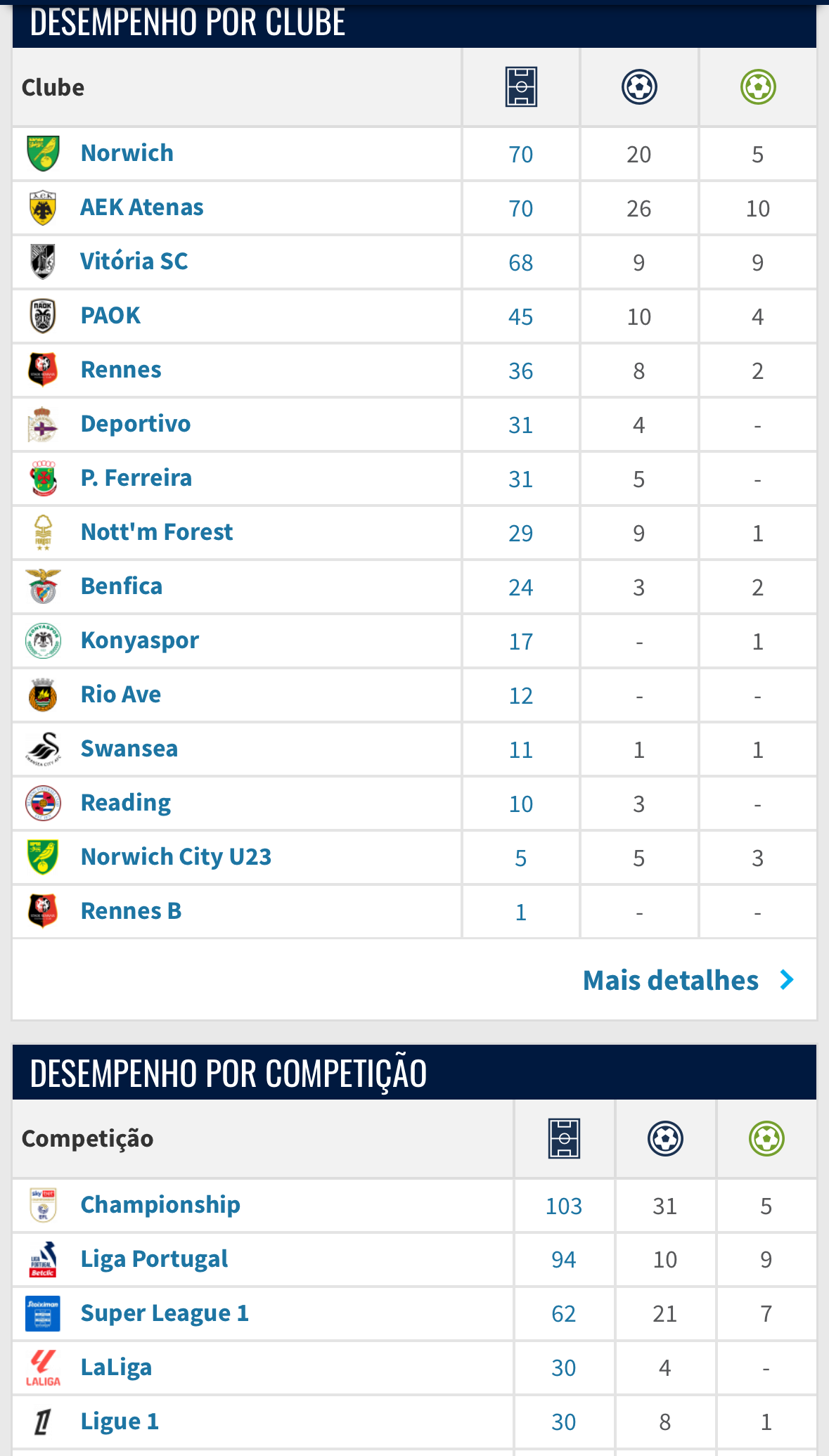 Tens de somar os 5 na Liga Conferência. + 4 pela Seleção. + 1 na Superliga (Taça da Liga ou lá o que é)
