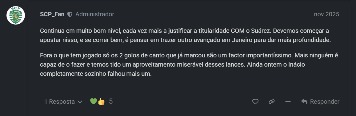Assim estamos refens de um conjunto de lesões inacreditável, que faz com que o Rui Borges olhe para o banco e possa fazer apenas duas substituições na Liga dos Campeões pq o nosso banco está uma miséria.