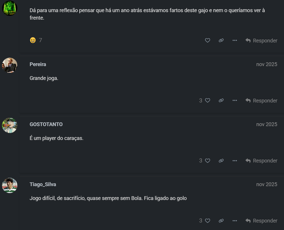 Sinto que é muito fácil destruir/desvalorizar um jogador, e que somos top mundial a fazer disso… rodamos pouco, os suplentes não têm confiança e com um plantel destes parece que de repente, fora os 14 ou 15 que jogam, os outros são uns amadores que andam ali.