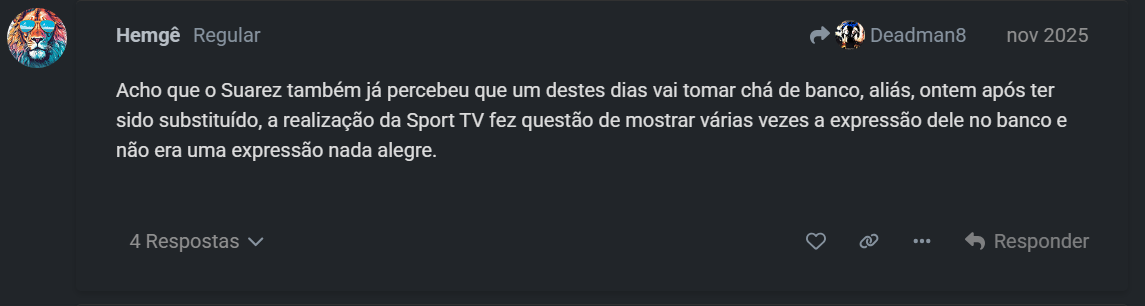 Não me ligues, estou tão aziado com o facto de não termos aquele que seria para mim o nosso melhor jogador, que já ando a espingardar.