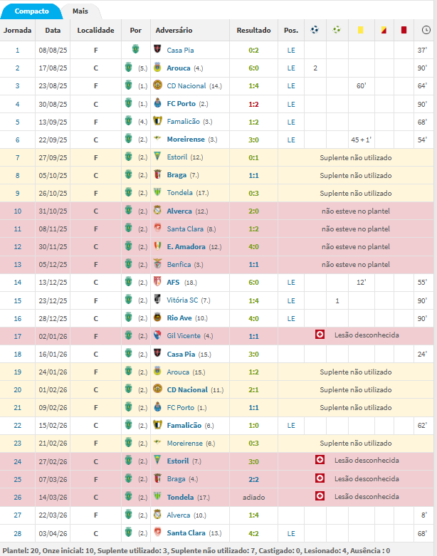 Portanto, não sei que outra gestão queres. Como em qualquer plantel há titulares e suplentes. Não podemos esperar que tenham todos a mesma carga. E depois há tudo aquilo que não se controla. Com Fotis disponível, teria havido uma gestão muito melhor do Suarez. Igual com o Quenda, por exemplo.