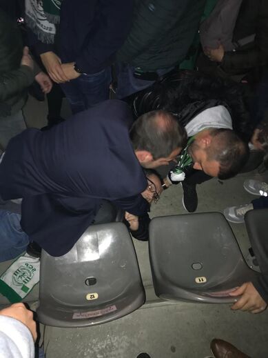 estava escuro…Sim, realmente depois desse abraço devem ter ficado grandes amigos. É completamente impensável o Varandas não reconhecer um adepto que pertence a uma das centenas de núcleos do Sporting no país, mesmo que esteja deitado no chão, no meio das cadeiras.