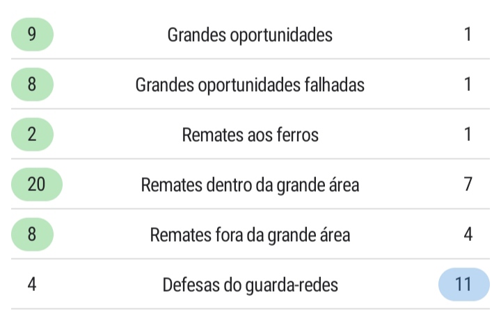 Só achei muito estranho o sofascore dar 10 oportunidades flagrantes a uma equipa e essa equipa falhar 9!! Nunca tinha visto números tão altos de oportunidades. Estou curioso para ver o resumo