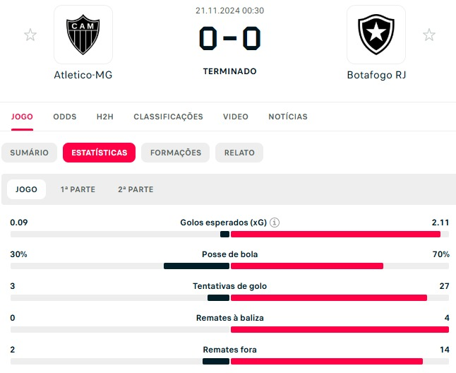O Botafogo está empatado com o Cuiaba, vamos ver se ainda sacam um golo