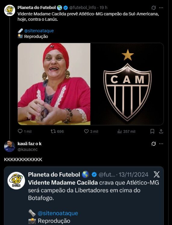 Já eu não quero alimentar trolls (brasileiros). A sobranceria deles seria inigualável se ganhassem o que quer que fosse às equipas portuguesas. São gente que não sabe ganhar ou perder.