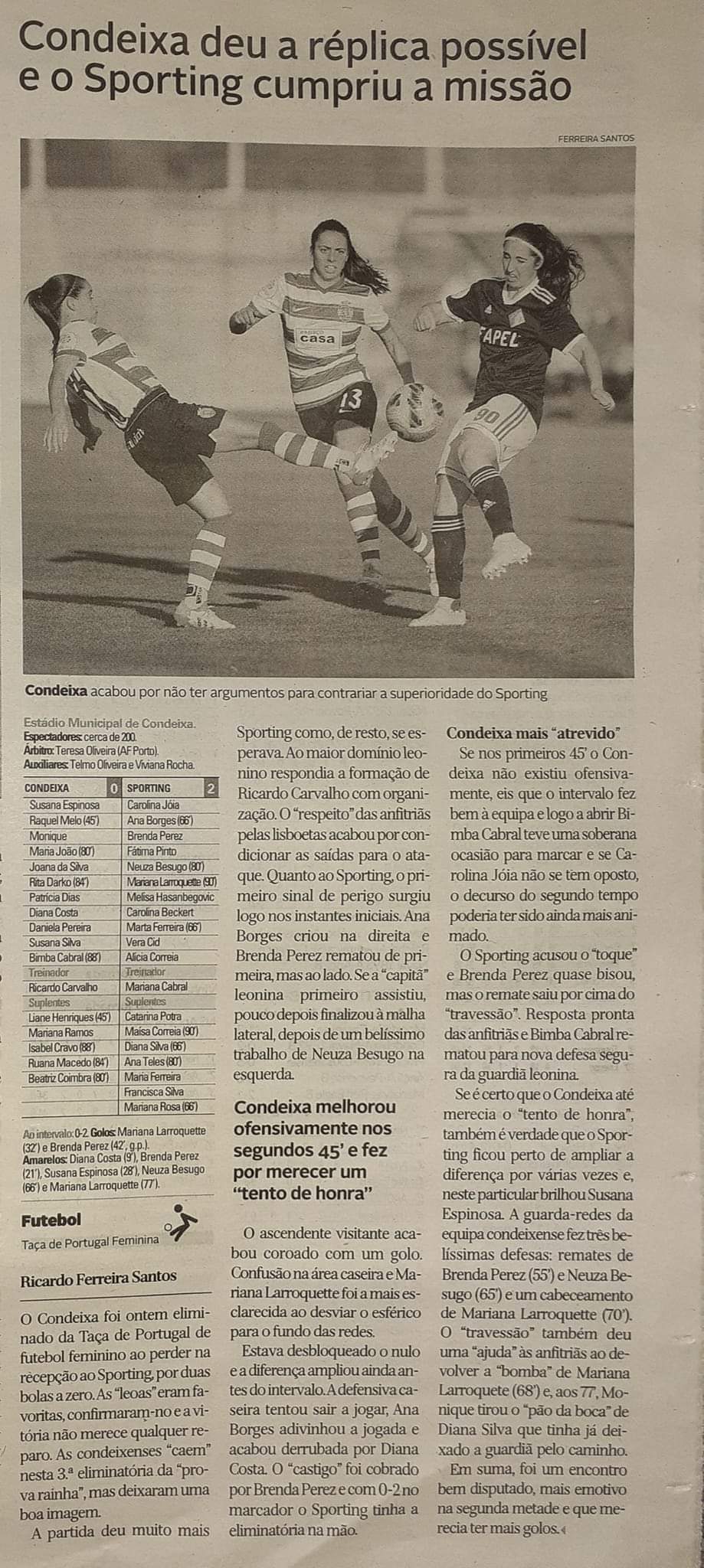 O marcador não sofreu alterações até ao apito final e as Leoas de Mariana Cabral deixaram Condeixa-a-Nova com a missão cumprida, seguindo em frente na Taça de Portugal.